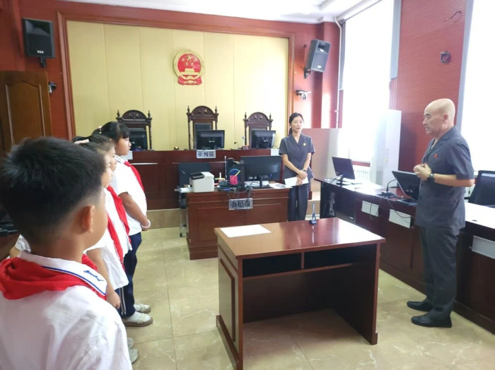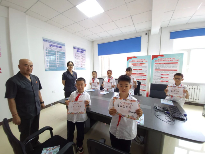 宣讲组邀请小学生代表走进爱辉区法院关爱未成年人的基层法庭工作室,倾听孩子们对普法工作的意见建议,吸纳其想法优化授课方式,并邀请孩子们担任“普法小助手”,主动将法治理念和法律知识传递给更多伙伴。