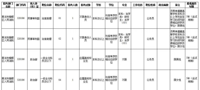 2026年公务员招录开始啦!爱辉区法院计划招录4人,欢迎报考!